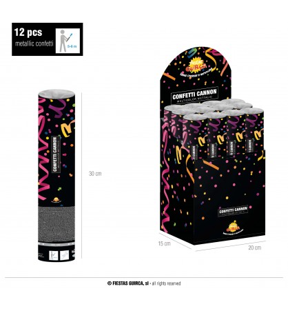 Tubo lanza confeti 30 cm, multicolor