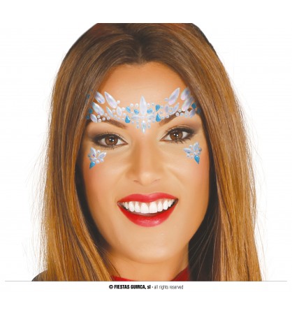 Joyas faciales adhesivas azules y blancas.